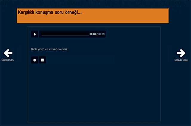 Karşılıklı Konuşma: kullanıcılara sesli olarak yöneltilen ve onlardan sözlü olarak cevap vermeleri beklenen sesli soruların yer aldığı bölümdür.