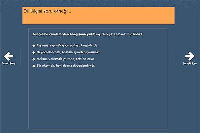 Türkçe dil bilgisi becerilerinin ölçüldüğü çoktan seçmeli sorulardan oluşan bölümdür.
