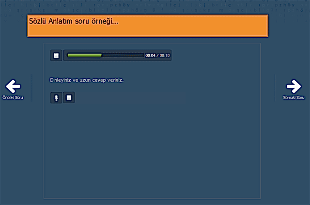 Sözlü Anlatım: Kullanıcılara yazılı ve görsel kaynaklar kullanılarak yöneltilen ve kullanıcılardan sözlü olarak cevaplaması İstenen soruların yer aldığı bölümdür. Bu bölümde uzun cevaplar verilmeli. (En az 3-5 dakika)